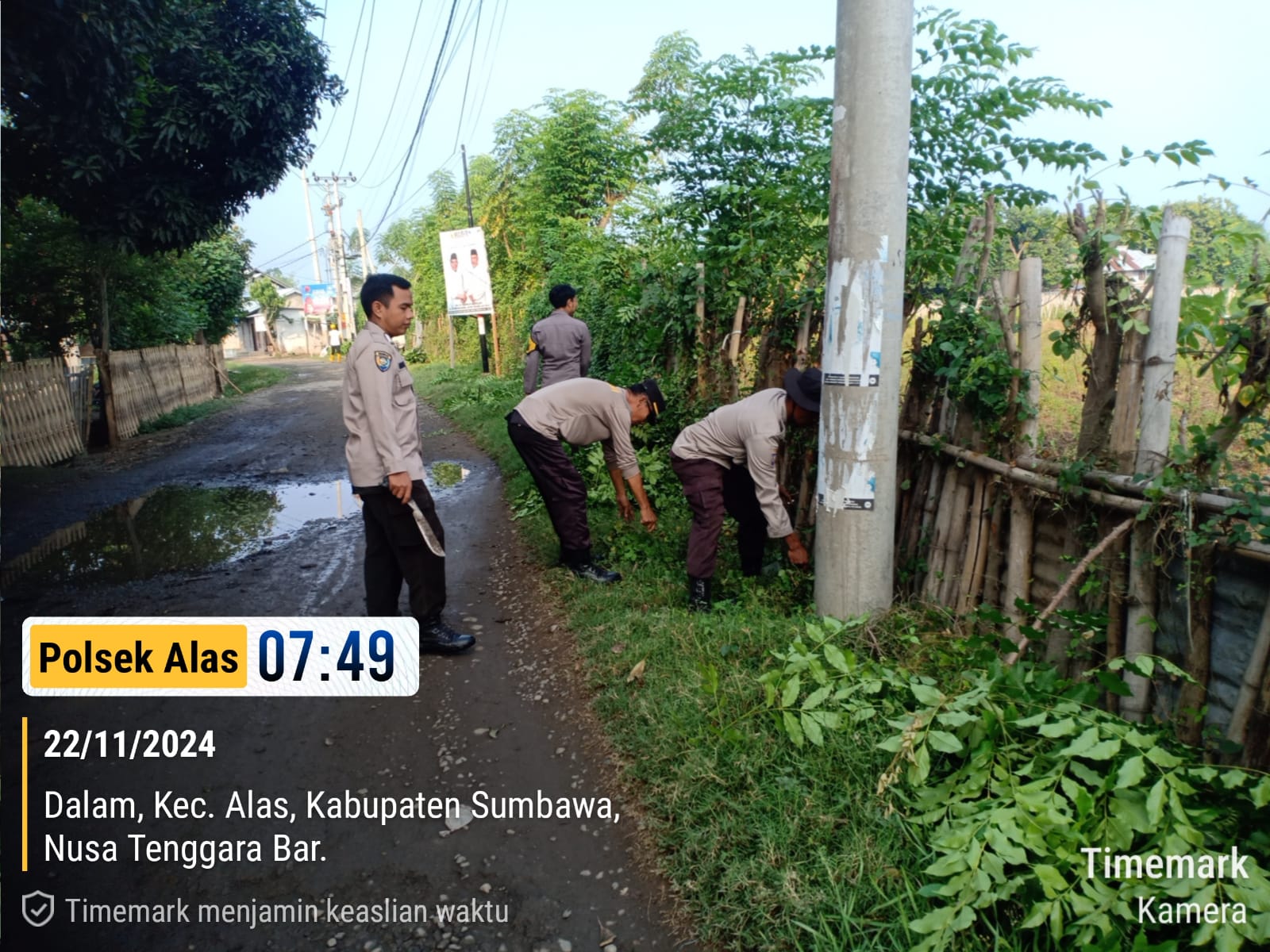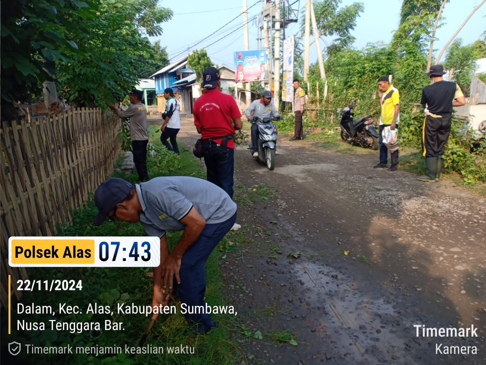 Sumbawa Besar-NTB, Dalam rangka menciptakan lingkungan yang bersih dan sehat, personel Polsek Alas bersama personel Koramil 1607-04 Alas, unsur Muspika, serta pemerintah Desa Dalam, melaksanakan kegiatan gotong royong di Desa Dalam, Kecamatan Alas, Jumat (22/11/24) pagi.