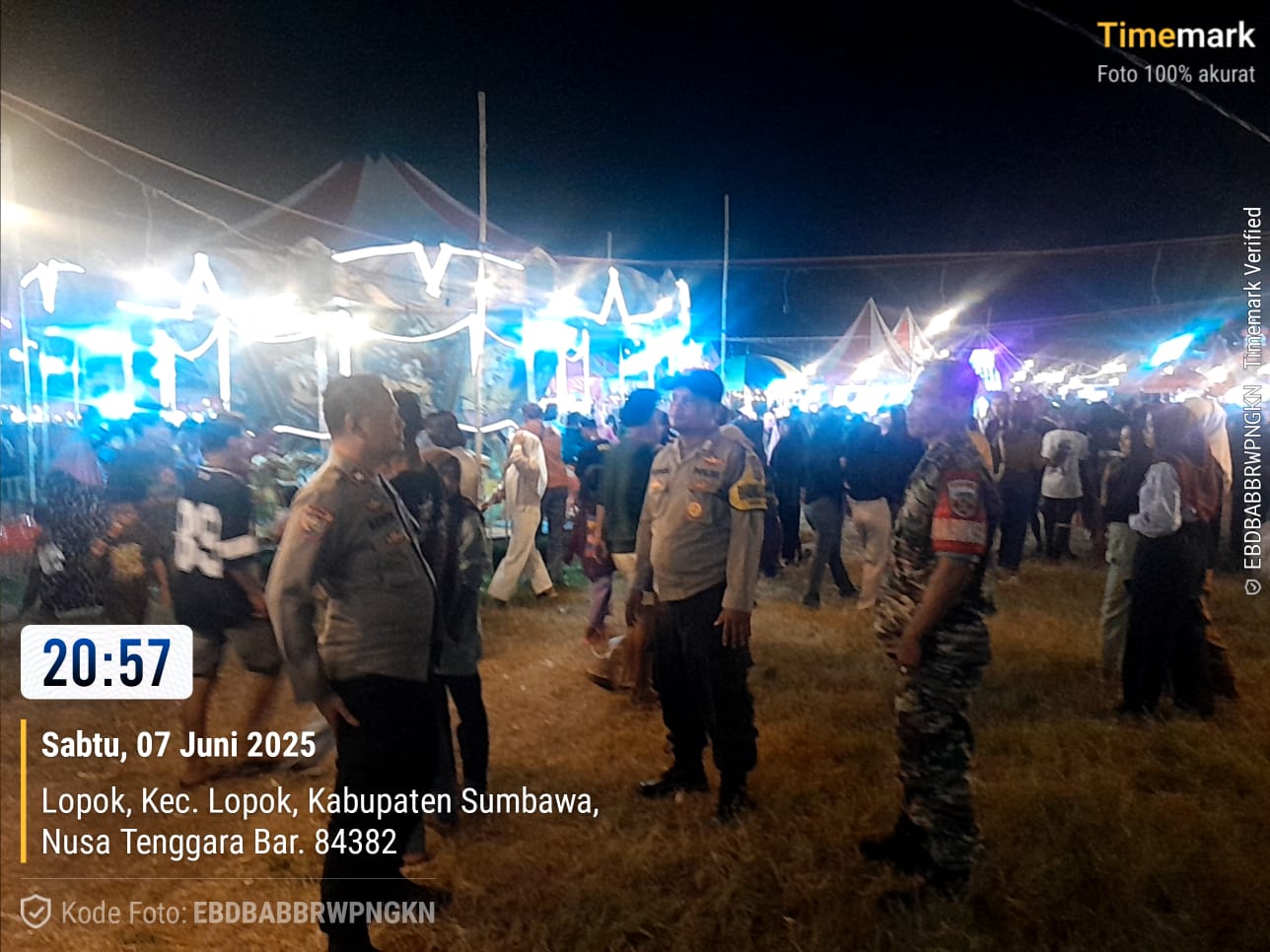Sumbawa Besar–NTB, Personel Polsek Lape sukses mengamankan kegiatan hiburan pasar malam (Expo) yang berlangsung di Lapangan Garuda, Dusun Lopok, Kecamatan Lopok, Kabupaten Sumbawa pada Sabtu malam, 7 Juni 2025. Pengamanan ketat ini dilakukan mulai pukul 20.00 WITA hingga seluruh rangkaian acara selesai.