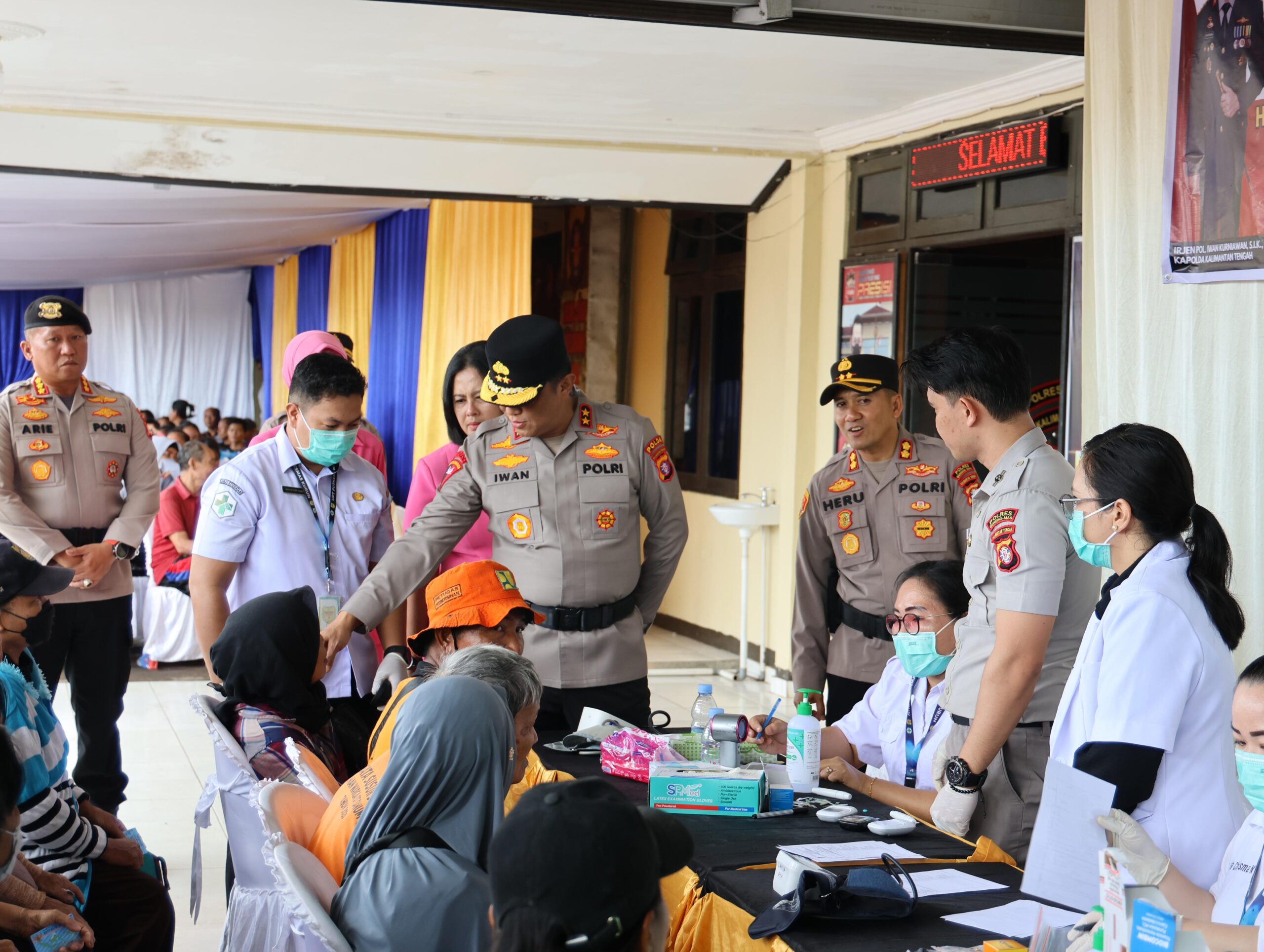 Didampingi oleh Irwasda Kombespol Dr. Benny G. Sudjana, jajaran Pejabat Utama (PJU) Polda Kalteng, dan Kapolres Gunung Mas AKBP Heru Eko Wibowo, S.I.K., M.H., Kapolda meninjau langsung pelaksanaan bakti kesehatan yang memberikan layanan pemeriksaan gratis kepada warga.