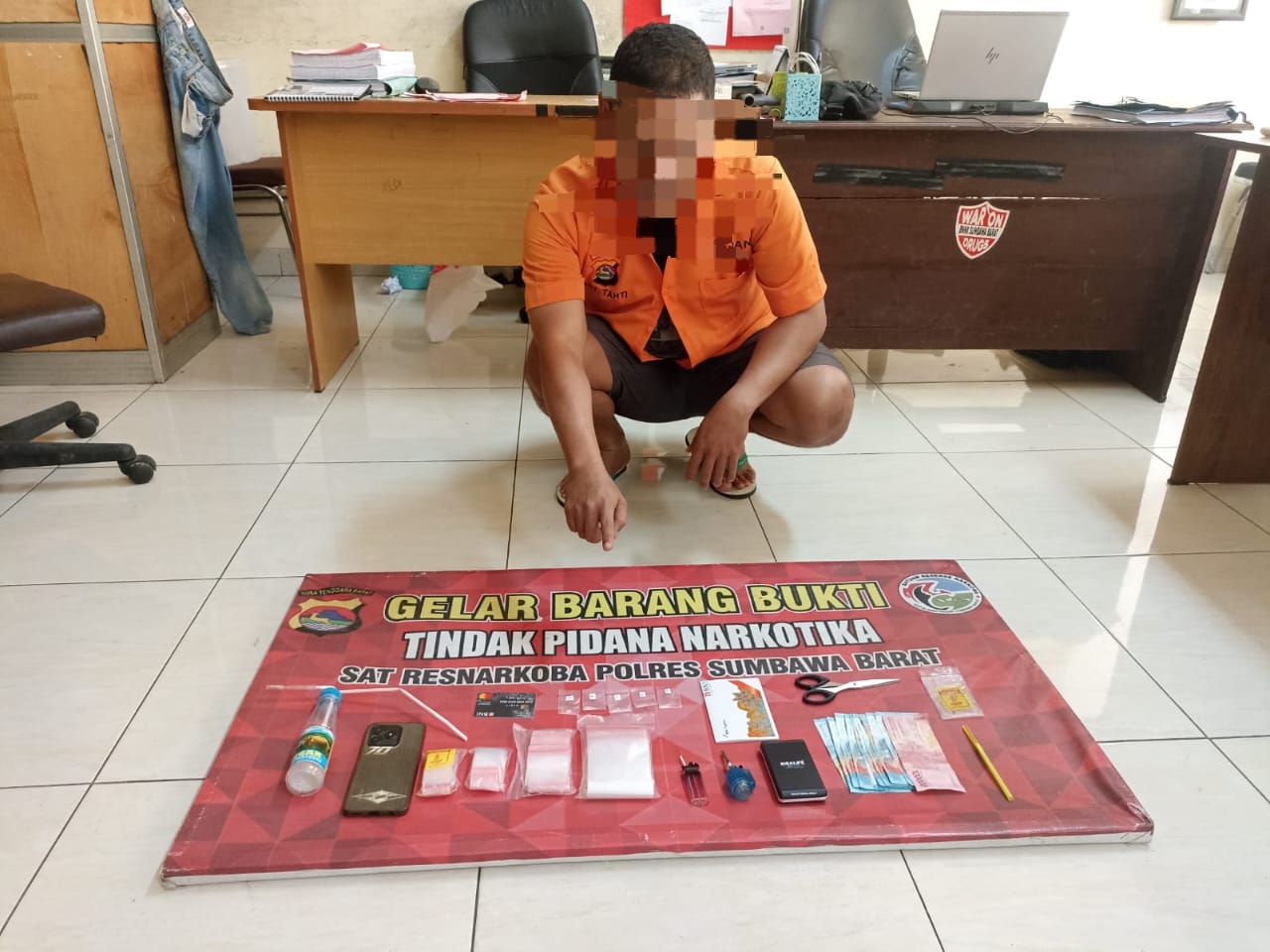 Dalam pengungkapan tersebut, petugas berhasil mengamankan seorang pria berinisial IF alias PO, warga Kelurahan Dalam, yang diduga kuat sebagai bandar narkoba di wilayah Sumbawa Barat. Penangkapan dilakukan di rumah terduga pelaku, di mana ditemukan sejumlah barang bukti yang berkaitan dengan aktivitas peredaran narkoba.