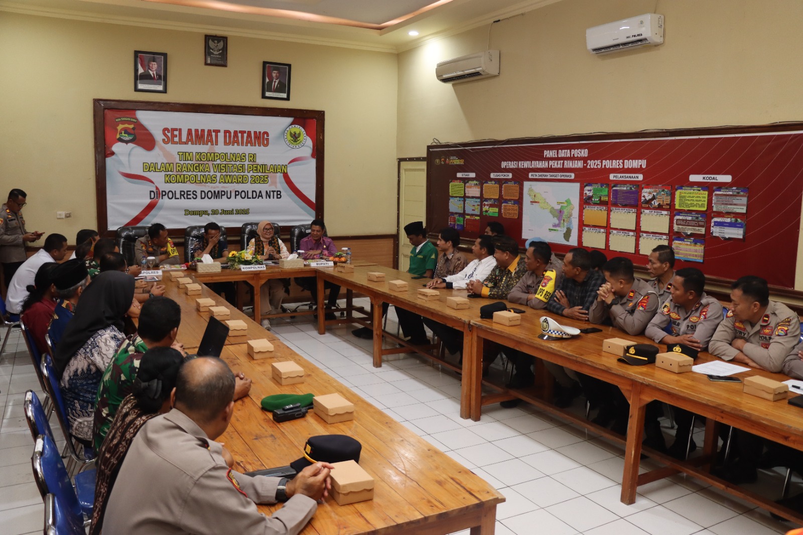 “Tim Kompolnas tiba dan disambut langsung oleh Kapolres Dompu AKBP Sodikin Fahrojin Nur, S.I.K., bersama para Pejabat Utama Polres Dompu, Forkopimda, dan tokoh masyarakat,” jelas AKP Zuharis.