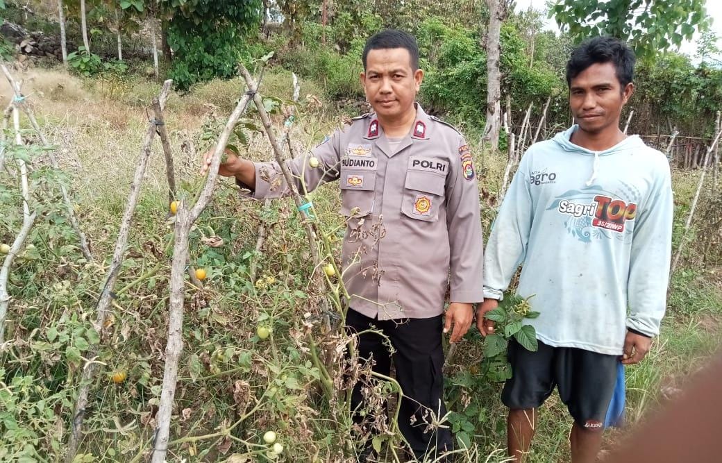 Adapun lokasi yang disambangi oleh Aiptu Budianto SH yakni lahan Tomat milik warga binaan di Desa Sai Kecamatan Soromandi Kabupaten Bima pada Senin 23 Juni 2025 siang kemarin