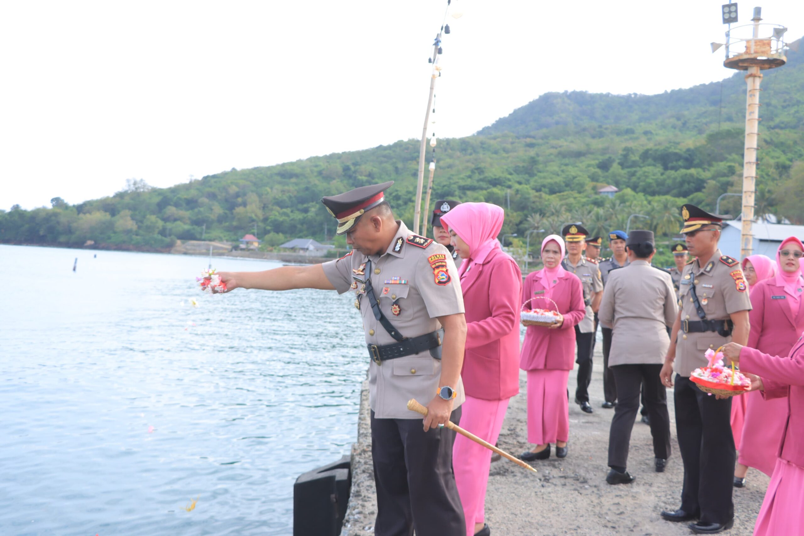 Peringati Hari Bhayangkara ke-79, Kapolres Sumbawa Barat Pimpin Upacara Tabur Bunga di Laut
