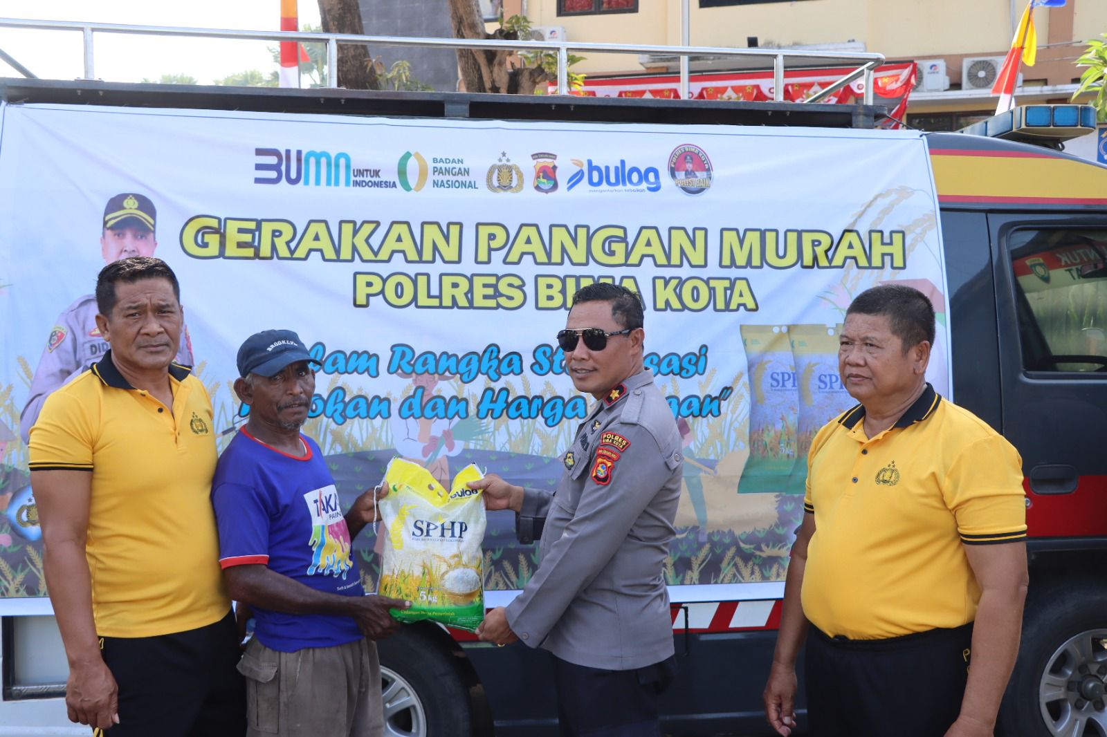 Kota Bima, NTB (12 Agustus 2025) – Dalam rangka menyambut Hari Ulang Tahun (HUT) ke-80 Kemerdekaan Republik Indonesia, Polres Bima Kota bekerja sama dengan Perum Bulog Bima menggelar kegiatan Pangan Murah yang mendapat sambutan antusias dari masyarakat, Selasa (12/8/2025).