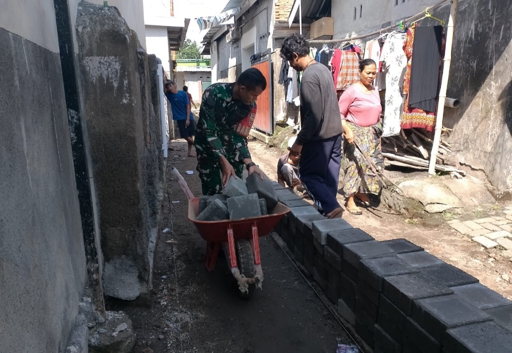 Babinsa Bersama Warga Rampungkan Pembangunan Jalan Paving Blok