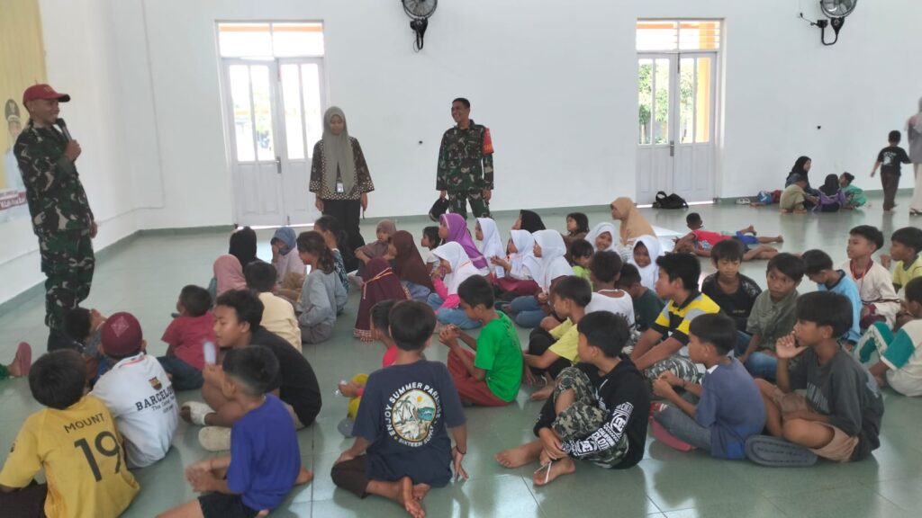 Lombok Barat, NTB — Wujud kepedulian Tentara Nasional Indonesia (TNI) terhadap pembentukan karakter generasi muda kembali ditunjukkan melalui kegiatan edukatif yang dilakukan sejumlah anggota Komando Rayon Militer (Koramil) 1606-07/Gunungsari, diantaranya Bintara Pembina Desa (Babinsa) Gunungsari, Koptu Muzahar, bersama jajaran Babinsa lainnya memberikan materi pembinaan kepada anak-anak Sekolah Rakyat Dasar 4 Lombok Barat di Sanggar Kegiatan Belajar (SKB) Gunungsari, Selasa (7/10/2025).