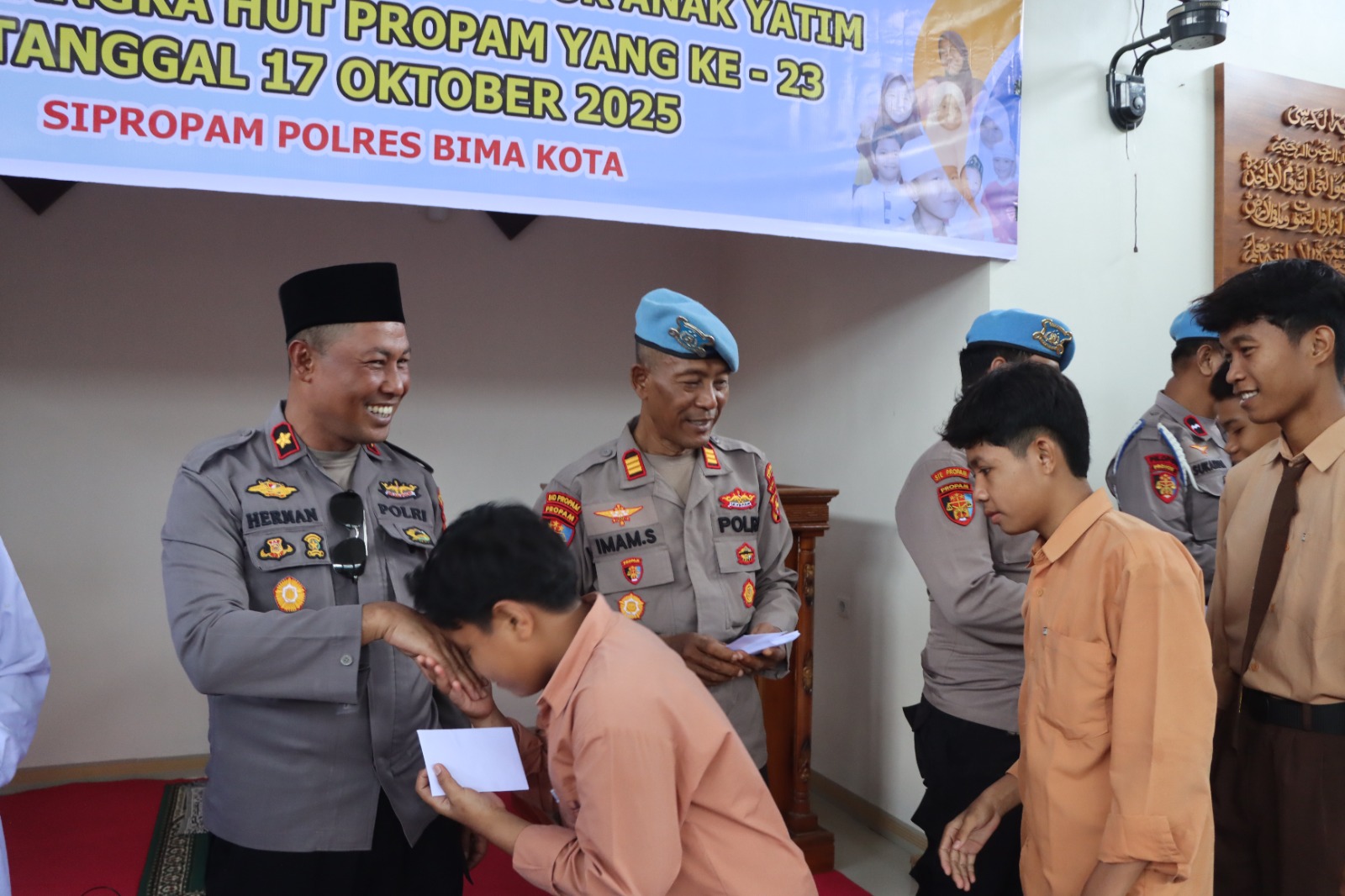 Kota Bima, NTB (17 Oktober 2025) – Dalam rangka memperingati Hari Ulang Tahun (HUT) Divisi Propam Polri ke-23, Seksi Profesi dan Pengamanan (Si Propam) Polres Bima Kota menggelar kegiatan syukuran dan santunan anak yatim pada Jumat (17/10/2025) pukul 09.00 Wita, bertempat di Masjid Jabal Qubis Polres Bima Kota.