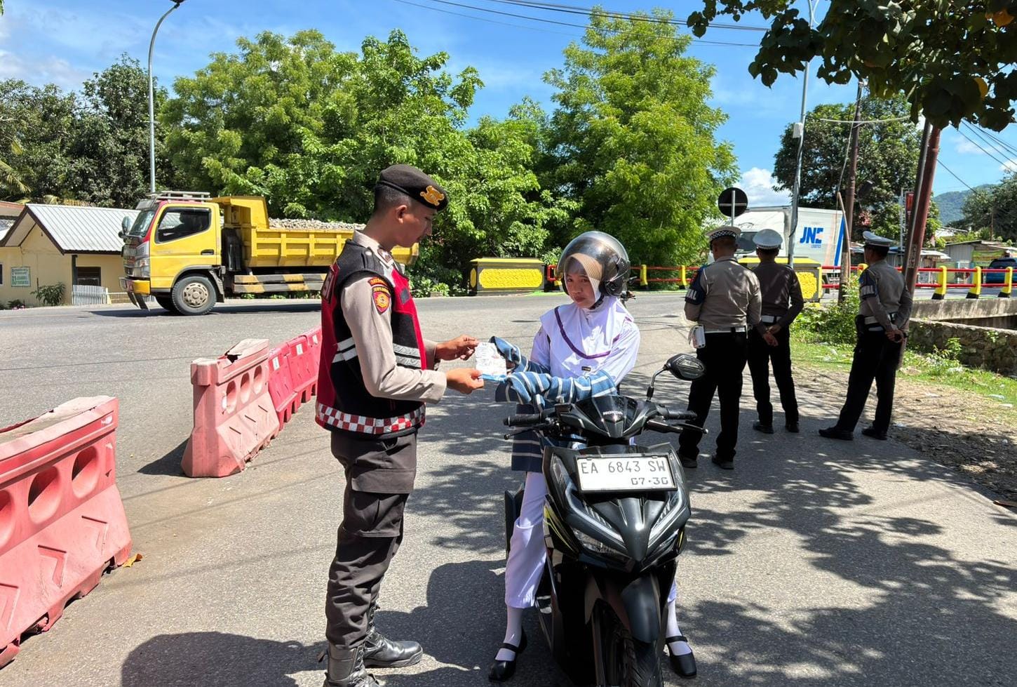 Dalam kegiatan tersebut, petugas mengingatkan sejumlah aturan, seperti penggunaan helm dan sabuk pengaman, larangan berkendara di bawah umur, serta bahaya berkendara sambil menggunakan ponsel atau dalam pengaruh Alkohol.