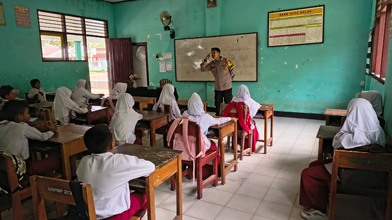 Kasi Humas Polres Sumbawa Barat, Iptu Ardiyatmaja, selaku narasumber menyampaikan bahwa kegiatan ini merupakan bagian dari peran Bhabinkamtibmas dalam mendukung program pemerintah sekaligus mendekatkan Polri dengan masyarakat, khususnya anak-anak sekolah.