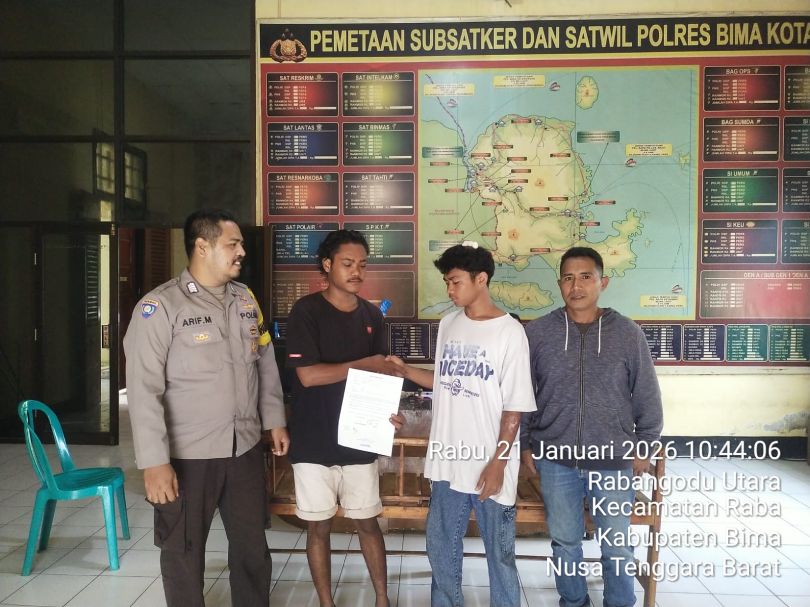 Kota Bima, NTB (27 Januari 2026) – Personel Bhabinkamtibmas Polres Bima Kota kembali menunjukkan komitmen dan kehadiran Polri sebagai problem solving di tengah masyarakat. Melalui pendekatan Restorative Justice, kesalahpahaman antara dua remaja akibat miskomunikasi di wilayah Pagesangan berhasil diselesaikan secara kekeluargaan dan damai.